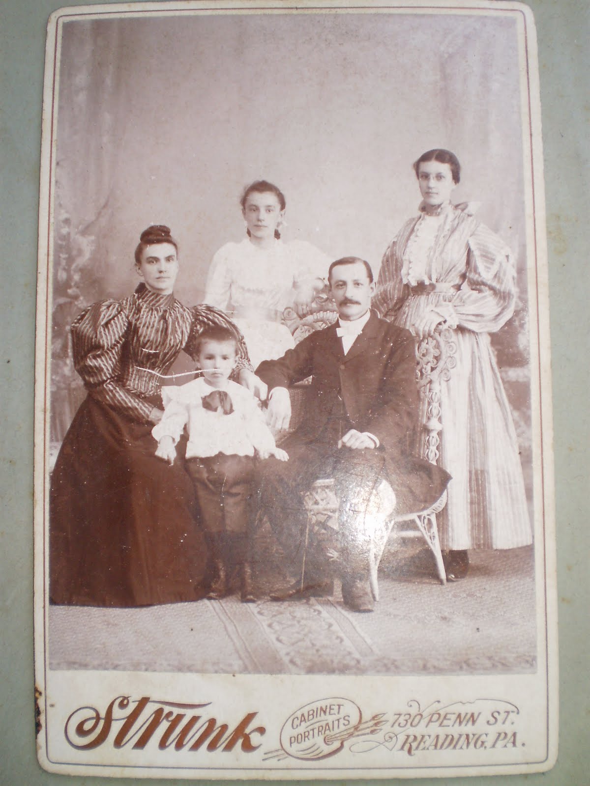 Years ago I got an old family scrapbook from my Aunt Helen (Still Webster). This photo was identified simply as :VanHorn Family." I believe them to be (seated) Maria Rice VanHorn (b. 1841), Thomas VanHorn (1866-1917), Chrispin P VanHorn (1839-1902) and (standing) Mary Alice VanHorn (b. 1868) and Sarah Jennie VanHorn (1864-1946). The identification is a best guess based on ages and difference between ages.